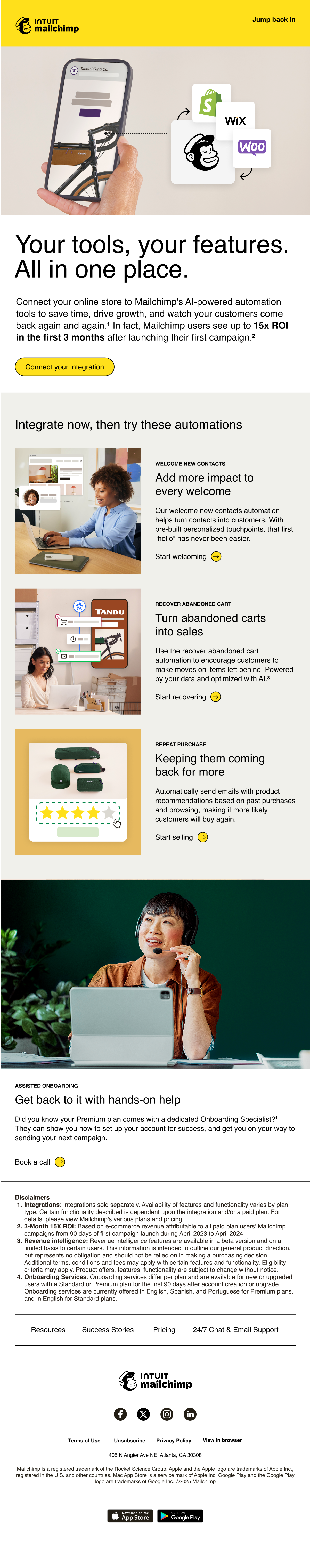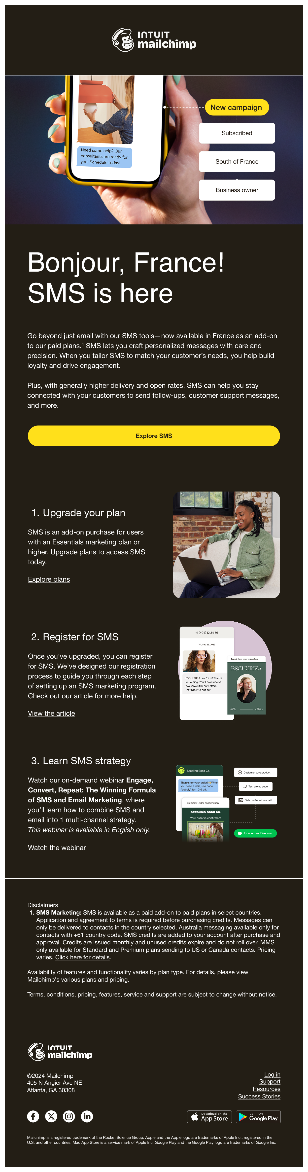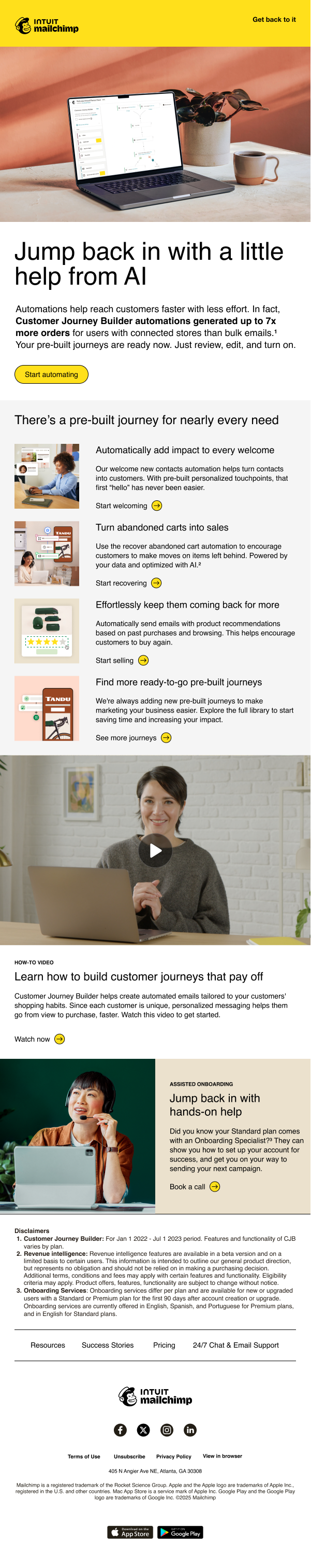 A flexible,composable component library that allows teams to rapidly build customized campaigns while safeguarding design consistency. This system simplifies production, empowers creative and writing teams, and ensures every campaign feels distinctly Mailchimp. It has also expanded beyond Lifecycle Marketing, being adopted by adjacent customer-facing teams outside of Marketing, further demonstrating its value and utility.