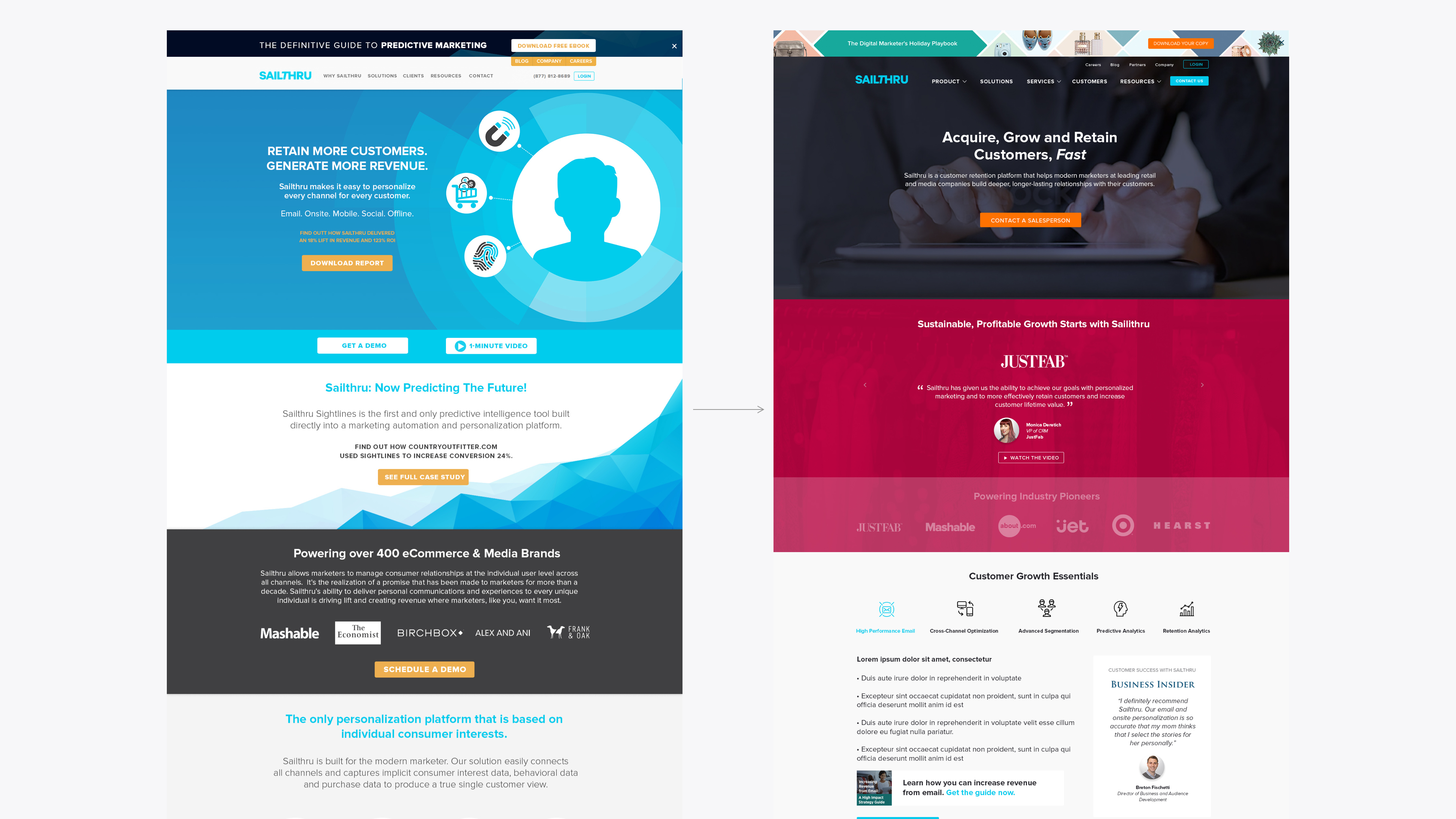 I led a full-scale brand and website redesign that elevated Sailthru’s market presence—driving stronger brand equity, improving lead quality, and increasing conversion rates across digital touchpoints.